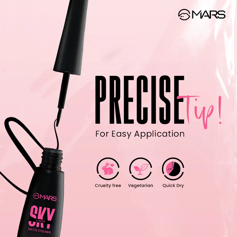 MARS Sky Eyeliner, Your ultimate ally for long-lasting, bold, and precise eye definition. The Eyeliner combines rich pigmentation with a smooth matte finish, ensuring your look stays flawless for up to 12 hours without smudging or fading.